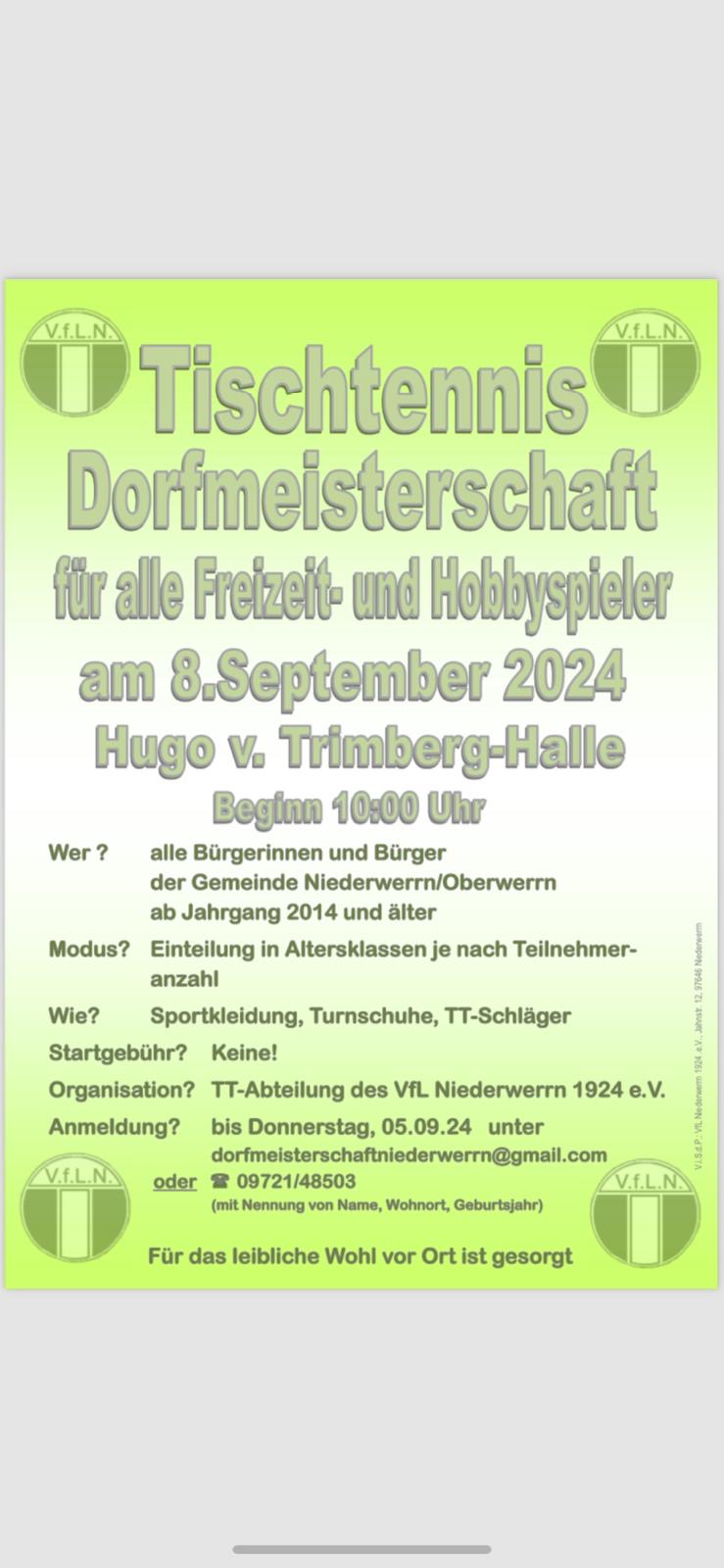Trainingszeiten der Tischtennisabteilung des VfL Niederwerrn: